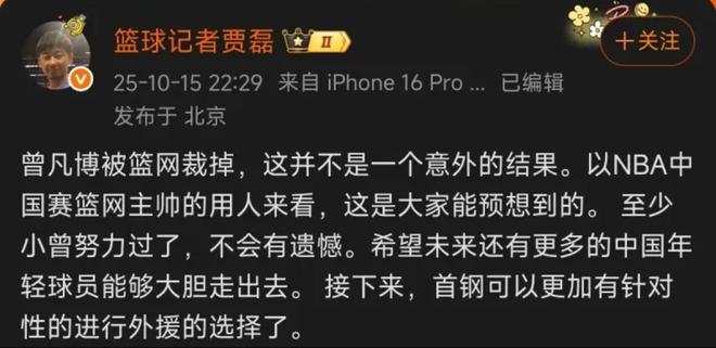 現(xiàn)在擺在曾凡博面前的有兩條路,一是繼續(xù)留在美國(guó)打發(fā)展聯(lián)盟,繼續(xù)尋找沖擊NBA的機(jī)會(huì);二是重返CBA打球。如果曾凡博選擇打發(fā)展聯(lián)盟的話,年薪方面比較低,而且能否獲得進(jìn)入NBA的機(jī)會(huì)也無法確定,有太多打發(fā)展聯(lián)盟的球員不得不最終放棄NBA夢(mèng)想。如果選擇重返CBA打球的話,結(jié)合曾凡博的年齡來看,他基本上就無法再次沖擊NBA了。對(duì)此北京記者賈磊在社交媒體上透露了他從北京男籃方面得到的最新消息,他表示從曾凡博的表現(xiàn)以及籃網(wǎng)主教練的用人來看,曾凡博被裁并不意外,“接下來,首鋼可以更加有正針對(duì)性的進(jìn)行外援的選擇了?!?/p>