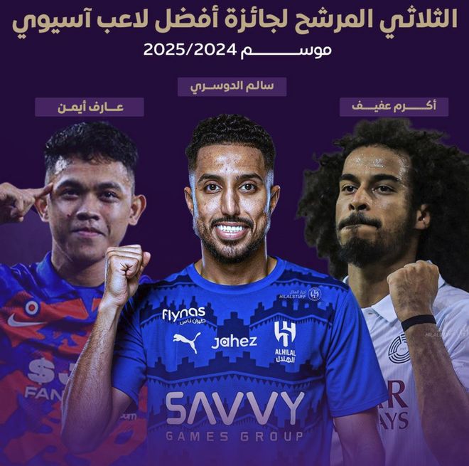 在此前亞足聯(lián)所公布的亞洲足球先生候選人中,包括沙特的薩勒姆達瓦薩里,還有卡塔爾的阿菲夫以及馬來西亞的艾曼。最終經(jīng)過評選,34歲的達瓦薩里贏得足球先生獎項。這也是他第2次獲獎,成為第1位2次當選為亞足聯(lián)年度最佳球員的沙特球員,是歷史第4人,此前日本的中田英壽,卡塔爾的阿菲夫,以及烏茲別克斯坦的杰帕羅夫都曾2次獲得亞洲足球先生。